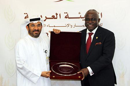 قام معالي الدكتور كانايو نوانزي- رئيس الصندوق الدولي للتنمية الزراعية (الإيفاد) بزيارة المكتب الإقليمي للهيئة العربية للإستثمار والإنماء الزراعي في دبي-دولة الإمارات العربية المتحدة في يوم الأربعاء 5 نوفمبر 2014 والاجتماع مع سعادة رئيس الهيئة الأستاذ/ محمد بن عبيد المزروعي.
